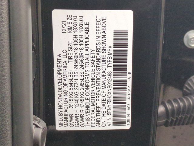 - VIN : 5FNYF5H5XNB012468