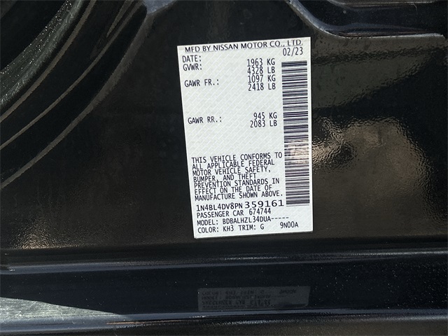 - VIN : 1N4BL4DV8PN359161