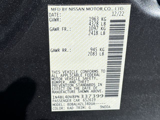 - VIN : 1N4BL4DV8PN337399
